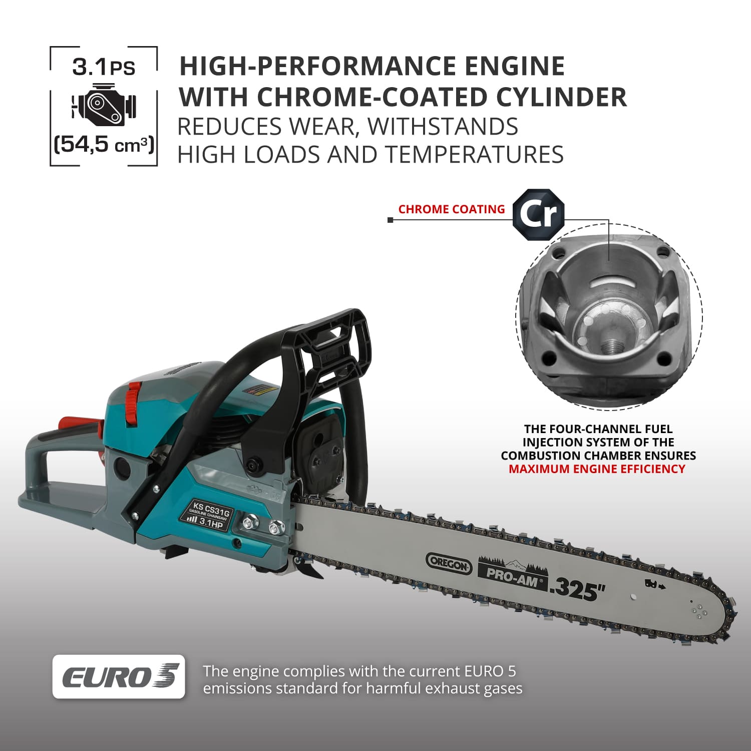 - EFICIENȚĂ RIDICATĂ A MOTORULUI: Motoarele de drujbă pe benzină Könner & Söhnen sunt cunoscute pentru fiabilitatea lor ridicată și rezistența la uzură, asigurând o durată lungă de viață. Sistemul de alimentare cu combustibil în patru canale asigură amestecarea optimă a amestecului de aer-combustibil pentru cea mai eficientă combustie, ceea ce reduce substanțele nocive din gazele de eșapament și maximizează eficiența consumului de combustibil.