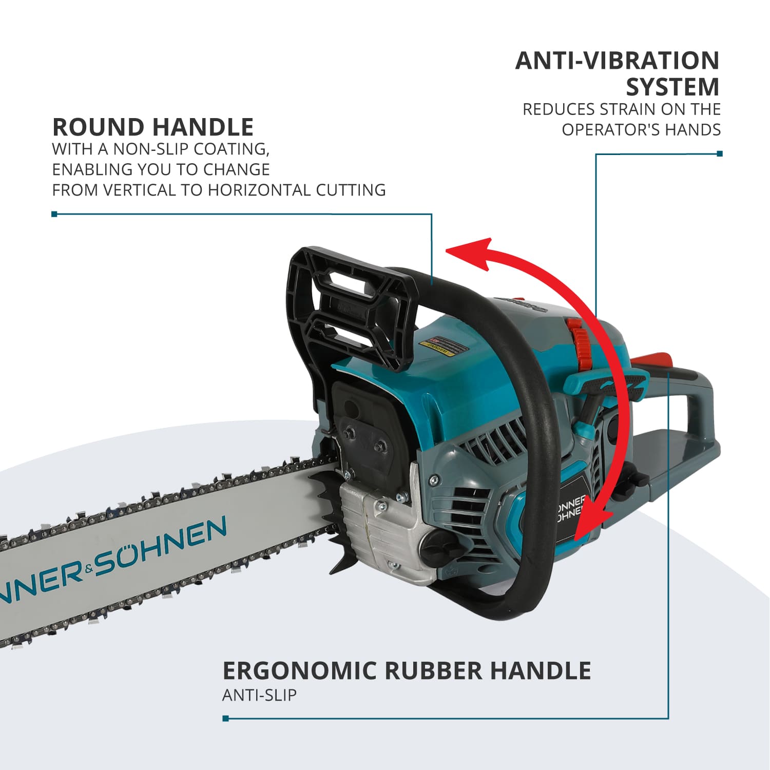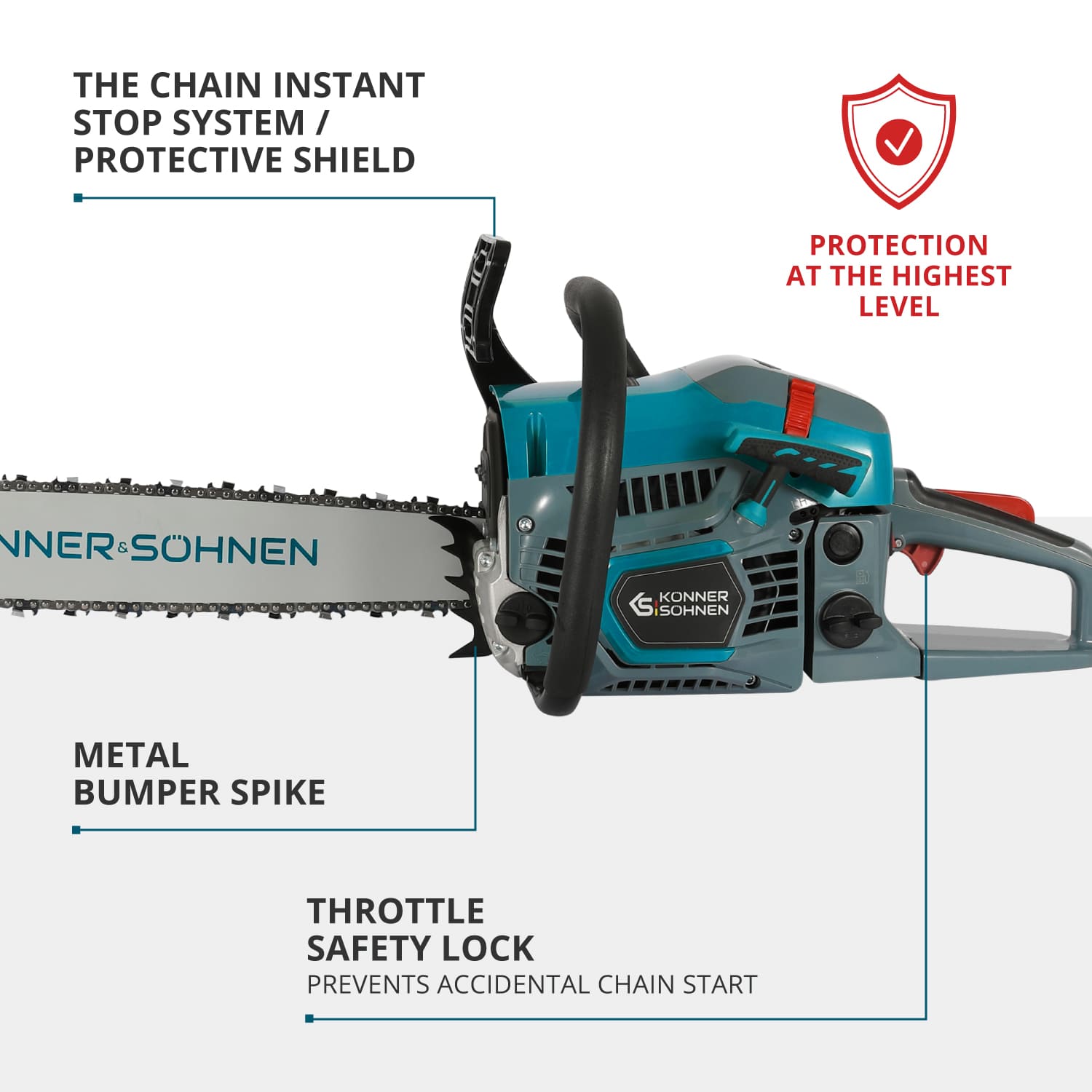 PROTECȚIE DE NIVEL ÎNALT: Motoferăstraiele pe benzină Könner & Söhnen® sunt echipate cu caracteristici de siguranță integrate.