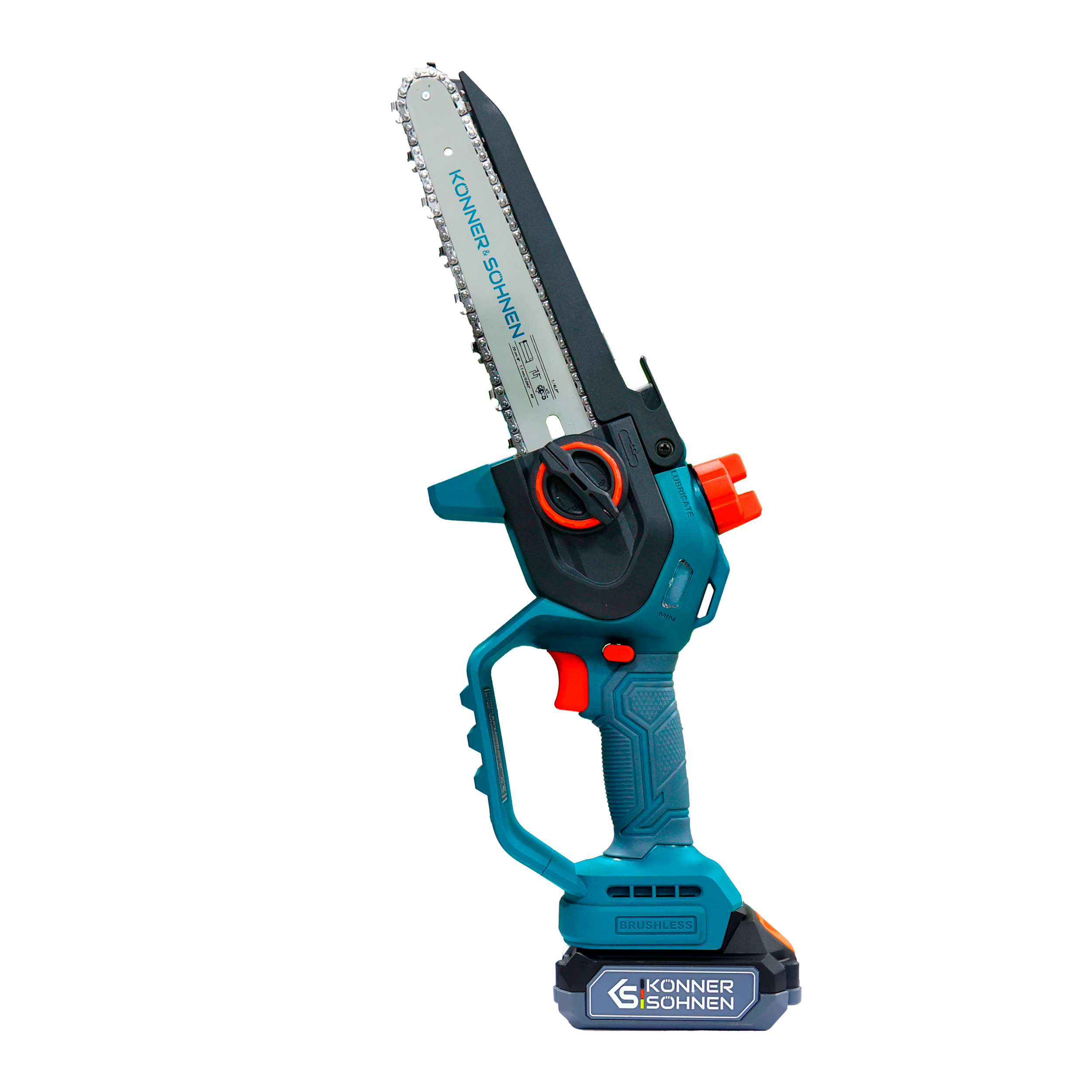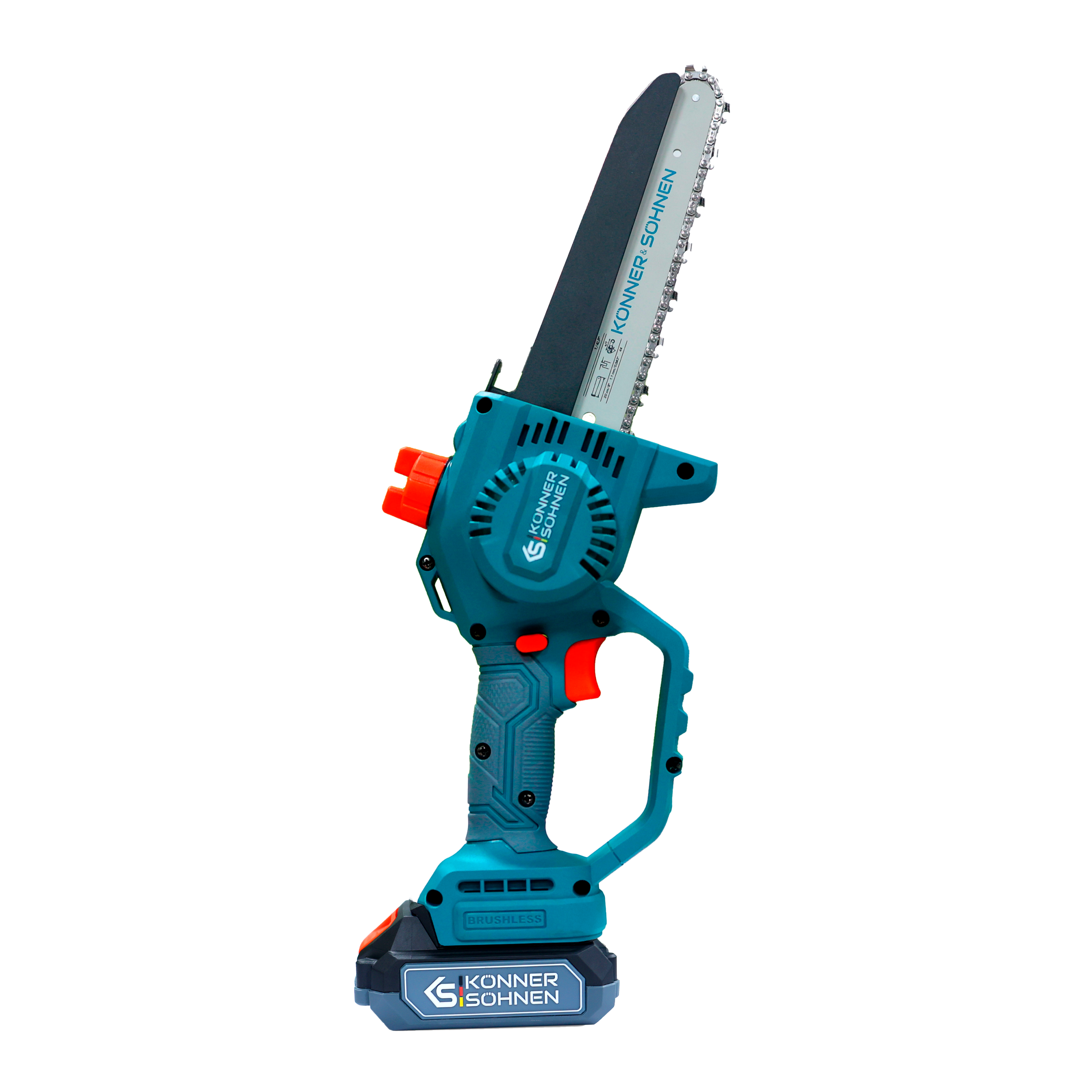 - Pachetul include:Mini-ferăstrău, Ambalaj, Instrucțiuni, 2 x Lamă de ghidaj 8″ (20 cm), 2 x Lanț, Sticlă pentru ulei, Încărcător pentru baterii 20V 2,4A KS C24A, Acumulator litiu 20V 2,0 Ah