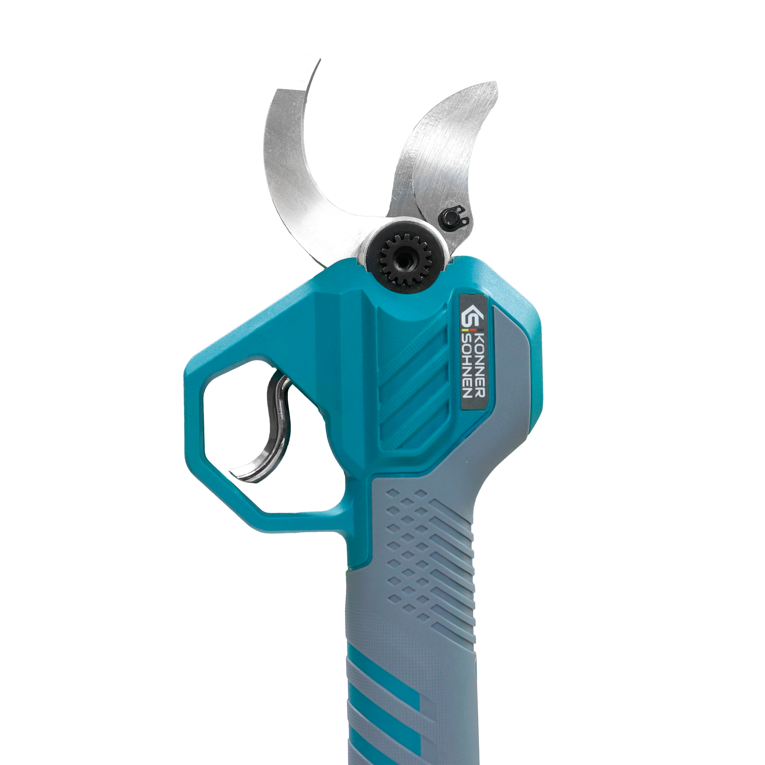 Foarfeca cu acumulator KS CPS20V-40 cu acumulator și încărcător incluse de la Könner & Söhnen® este o unealtă de grădină fiabilă, cu performanțe ridicate și tehnologie modernă. Motorul fără perii garantează eficiență, durată lungă de viață și nivel redus de zgomot. Două lățimi de deschidere a lamelor (20/40 mm) permit lucrul cu diferite ramuri, economisind timp și energia acumulatorului. Diametrul maxim de tăiere de 40 mm evidențiază acest model în comparație cu altele. Lamele din oțel carbon SK5 asigură o tăiere curată, iar detectorul de mână goală și controlul presiunii trăgaciului sporesc siguranța. Mânerul ergonomic cu înveliș din cauciuc și panoul de control practic fac munca confortabilă și precisă.