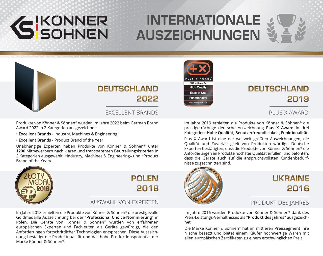 Despicătorul de bușteni de la TM «Könner & Söhnen» este dotat cu un motor electric puternic, fiabil și ecologic.