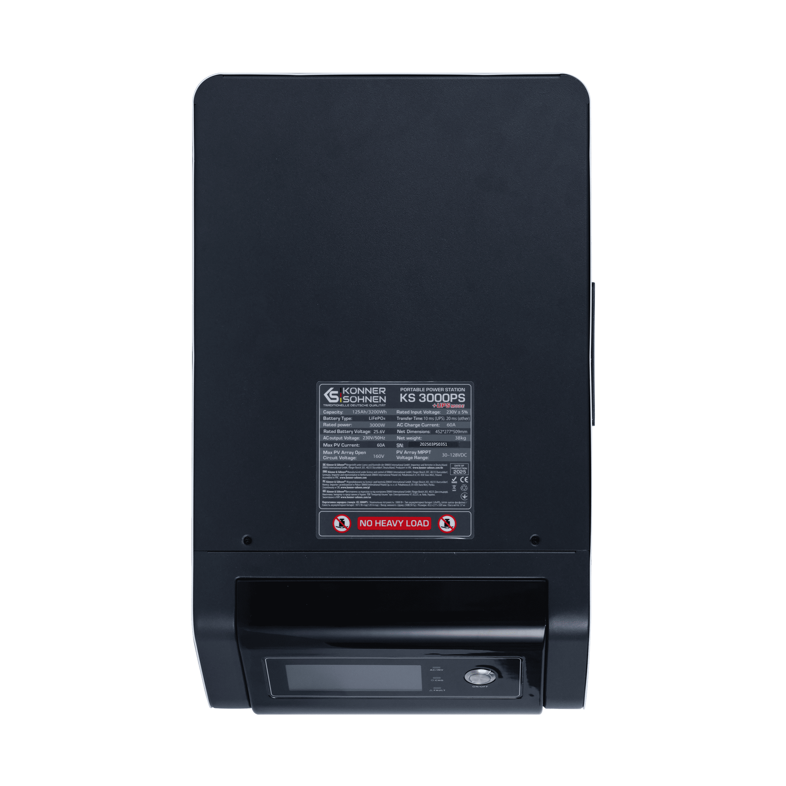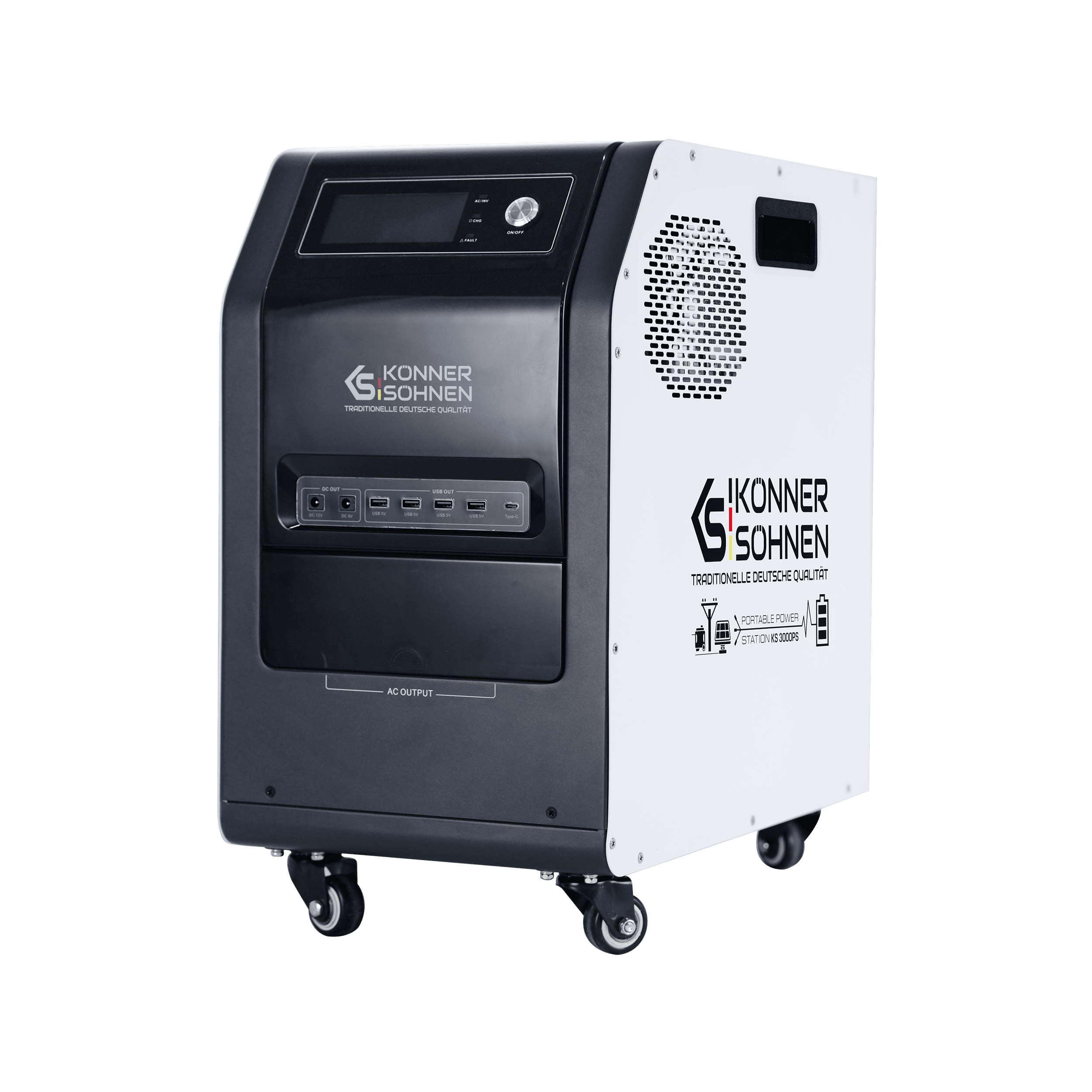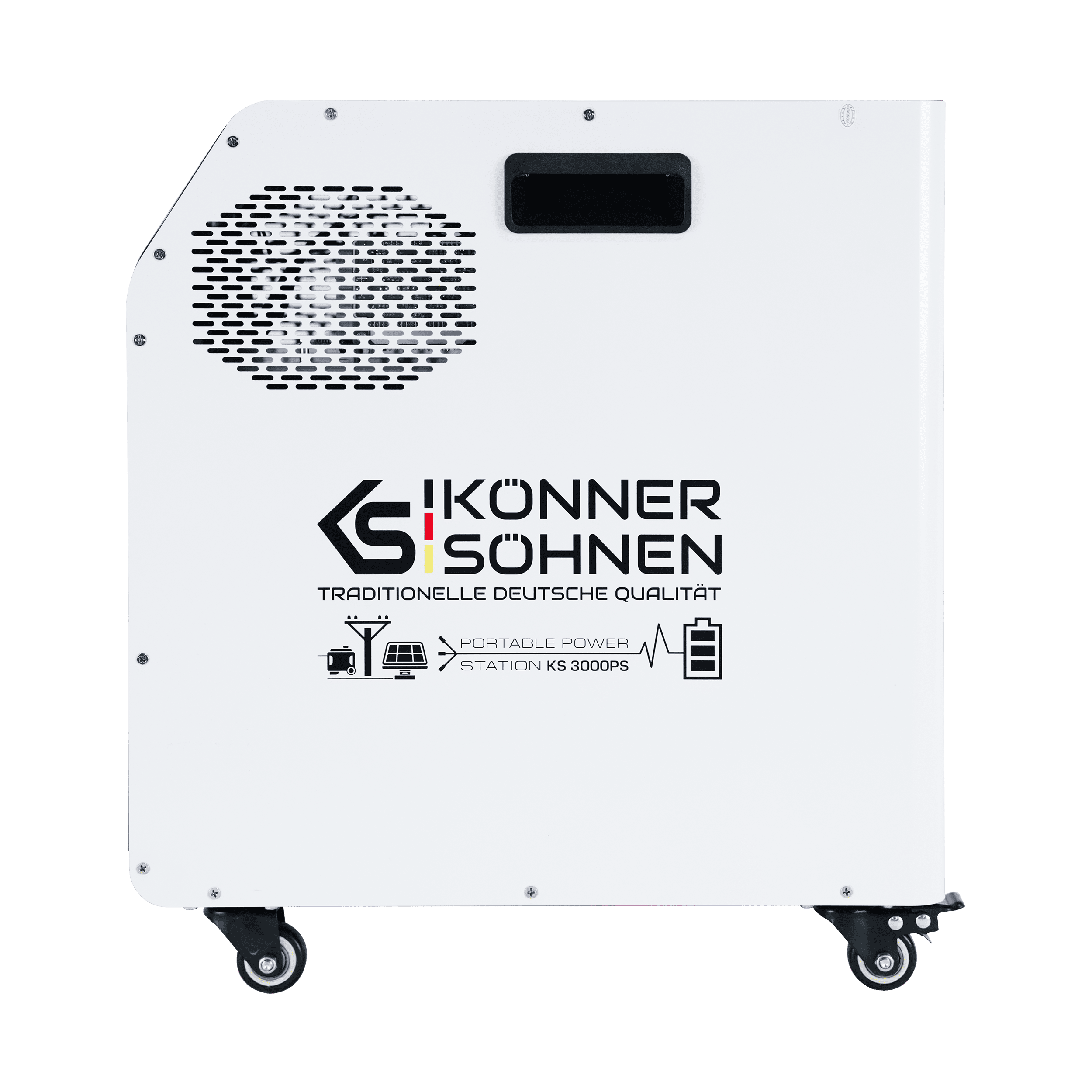 Könner & Söhnen KS 3000PS — este nucleul unui hub energetic hibrid cu o centrală electrică multifuncțională 3-în-1, care combină un invertor cu undă sinusoidală pură, un controler MPPT și o baterie LiFePO₄ de 3,2 kWh. Stația permite încărcarea din patru surse – rețea, panouri solare, baterie externă sau generator de curent continuu. Datorită ieșirii DC de 24V, permite integrarea cu generatoarele KS 24V-DC prin sistemul Tandem Power, care optimizează automat funcționarea și reduce consumul de combustibil. Fiabilă și silențioasă — această stație este pregătită pentru funcționare autonomă 24/7 acasă, în afaceri sau în caz de întreruperi de curent.
